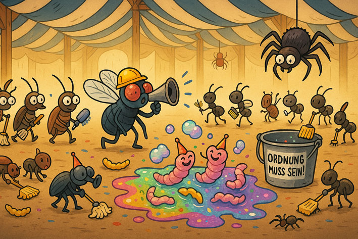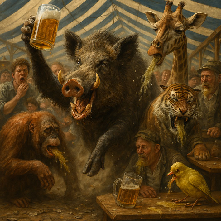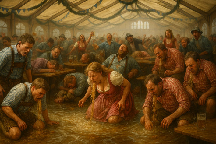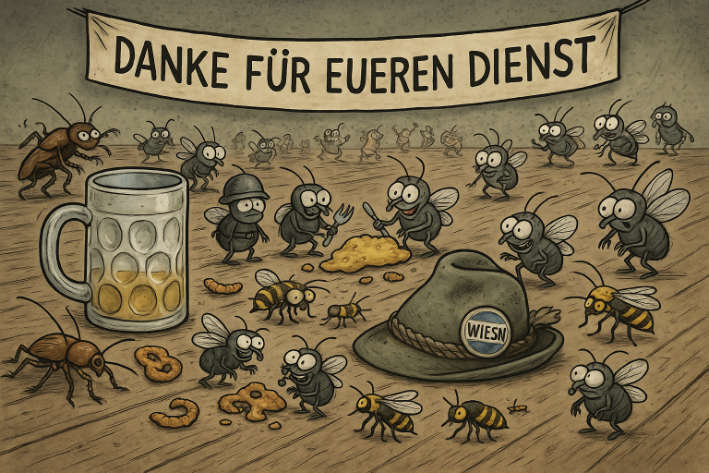 Woasd, wenn Wiesn is flackd bei mir in der Lindwurmstraß oiwei a Haufa Glump auf da Straß. Iwaroi Glosscherm. Iweroi a Gschpeiberts, Dreeg und Lettn. Im Bus am Sitz. Wosd hischausd hod scho eppa higschbiem. Habi gsagd, Dinringer, habi gsagd, lass die KI doch a Foto macha von der Lindwurmstraß zur Wiesnzeit. Howama dengd boarisch werd die KI eh ned vaschteh, und dann hobi gsagd: