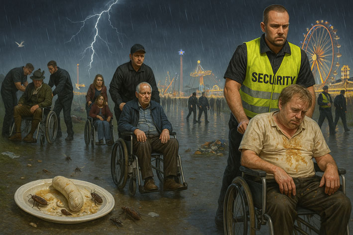 die Kunden stehen schwankend – stockbesoffen, krank.