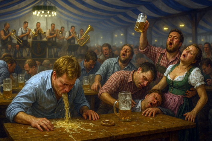 ... gekotzt wird nach wie vor, auch vor der Haustüre und in der U-Bahn. Das Wiesngelände ist ein Pferch, Die besten Plätze sind Haram, so das Klo hinter dem Hofbräuzelt und das Bieslwäldchen u.a.. Keine Lust auf die Wiesn von den Securitys gesichert und wegemäßig deren Anweisungen zu befolgen... |